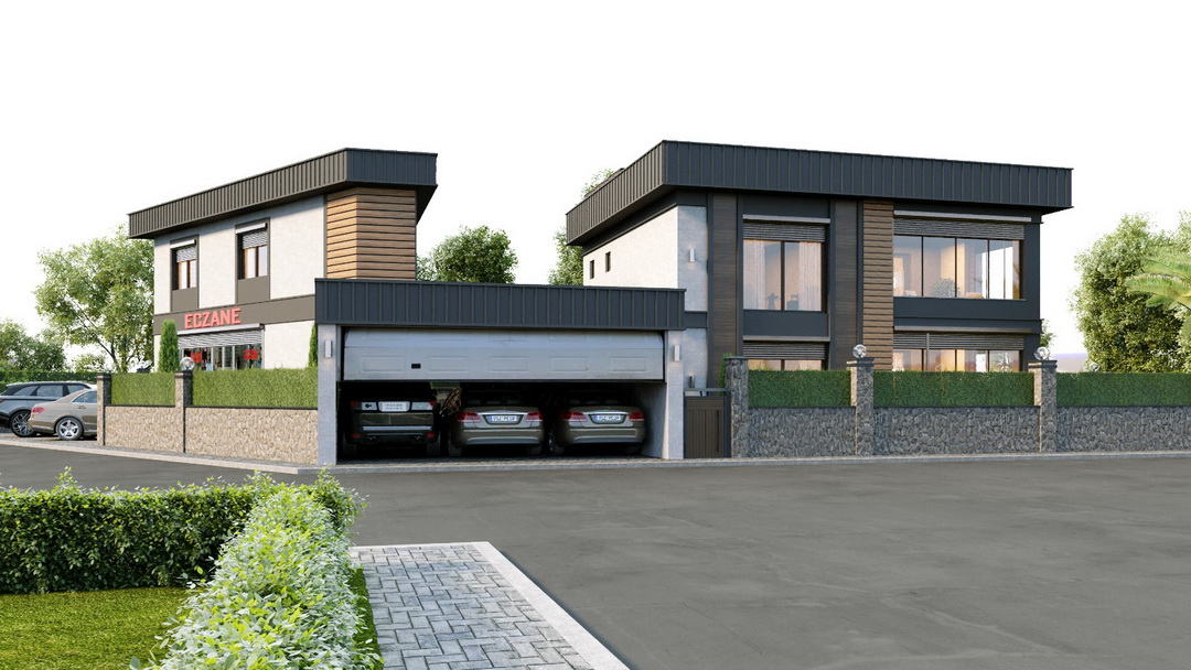 Kandıra merkezde yapılan bu projede hem işyeri hem konut tek parselde ama bağımsız olarak tasarlanmıştır.